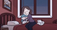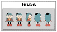 Early design sketches Hilda had, with a cat as companion instead of Twig.