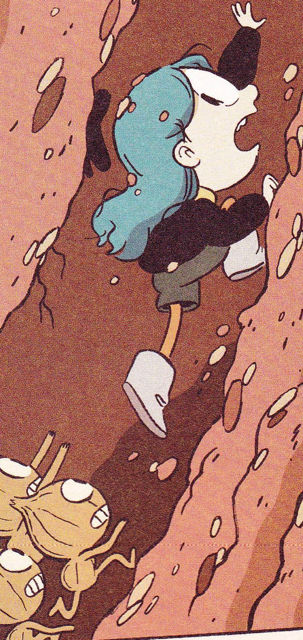 In "Chapter 1: The Troll Circle", one vittra pokes out from underground to yarn when he immediately noticed the walking-land creature coming his way thus ducked, only for him to see Hilda and Twig running towards to which the vittra ducks again. As he then stared annoyed, where Hilda sheepishly apologized to him.