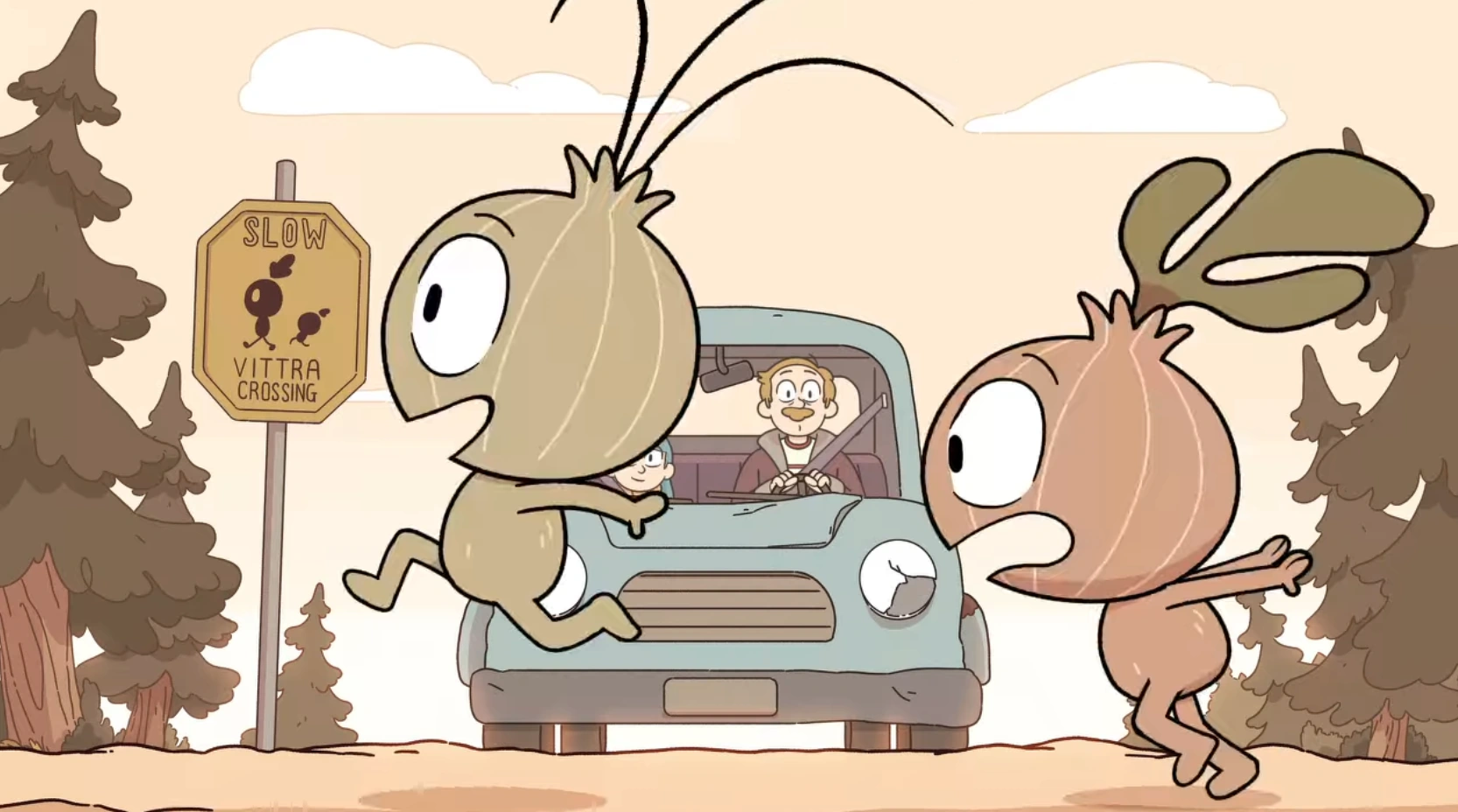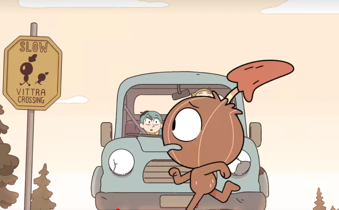 While both Hilda and Anders take a drive in Chapter 5: The Job. They briefly stopped near a Vittra crossing sign, in which case these three vittra run across the road.